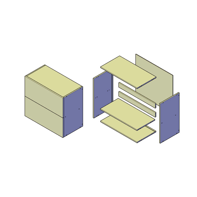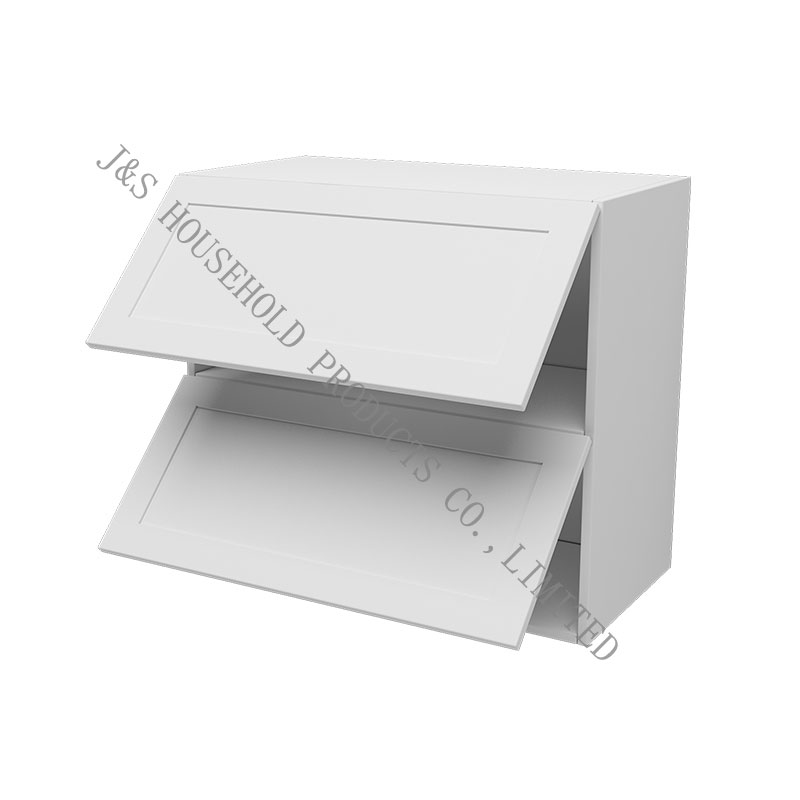 Рамно пакување за кујнски комплети Кабинетот со двојно преклопување е дел од горната единица во кујната. Користете го за поставување на ѕидниот кабинет со механизам за превртување Blum VENTOS®.