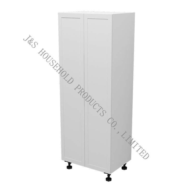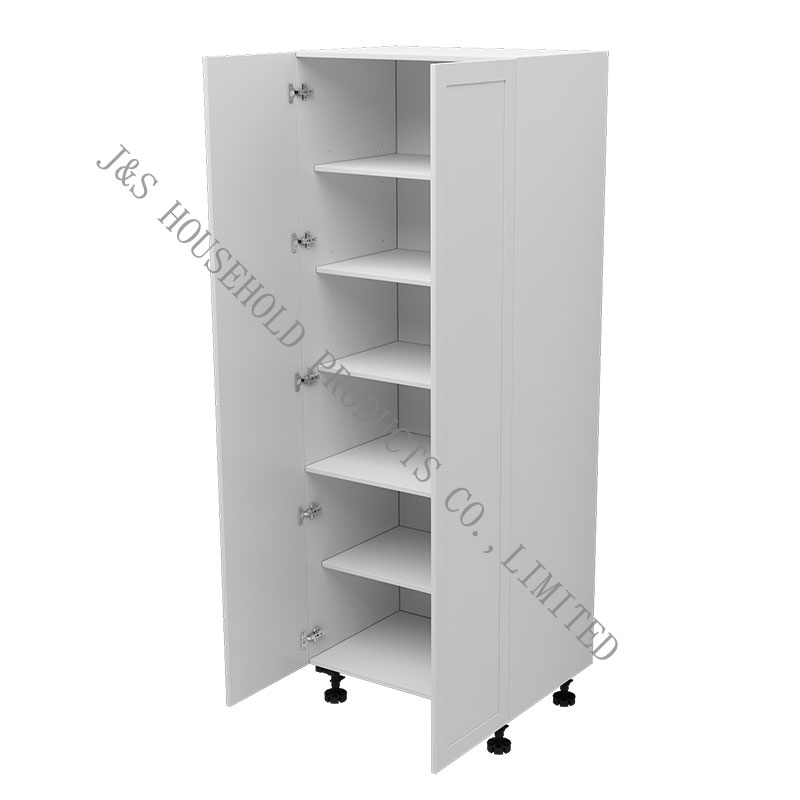 J&S висококвалитетен Kitset Кујнски рамно пакување Висок кабинет со двојна врата ја прави кујната поинтегрирана. Ако кабинетите се дизајнирани како високи кабинети, целата кујна може да изгледа поинтегрирано, а во средината на кабинетите нема да има голем дел, за да може кабинетите да изгледаат поубаво.